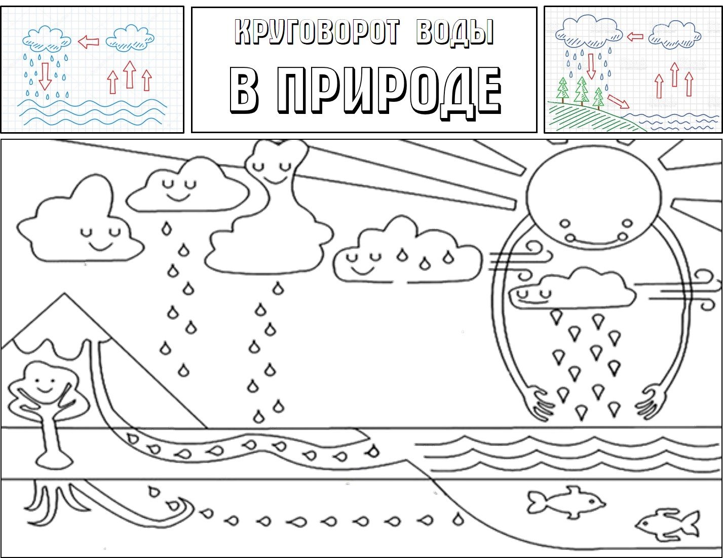 Круговорот воды в природе раскраска