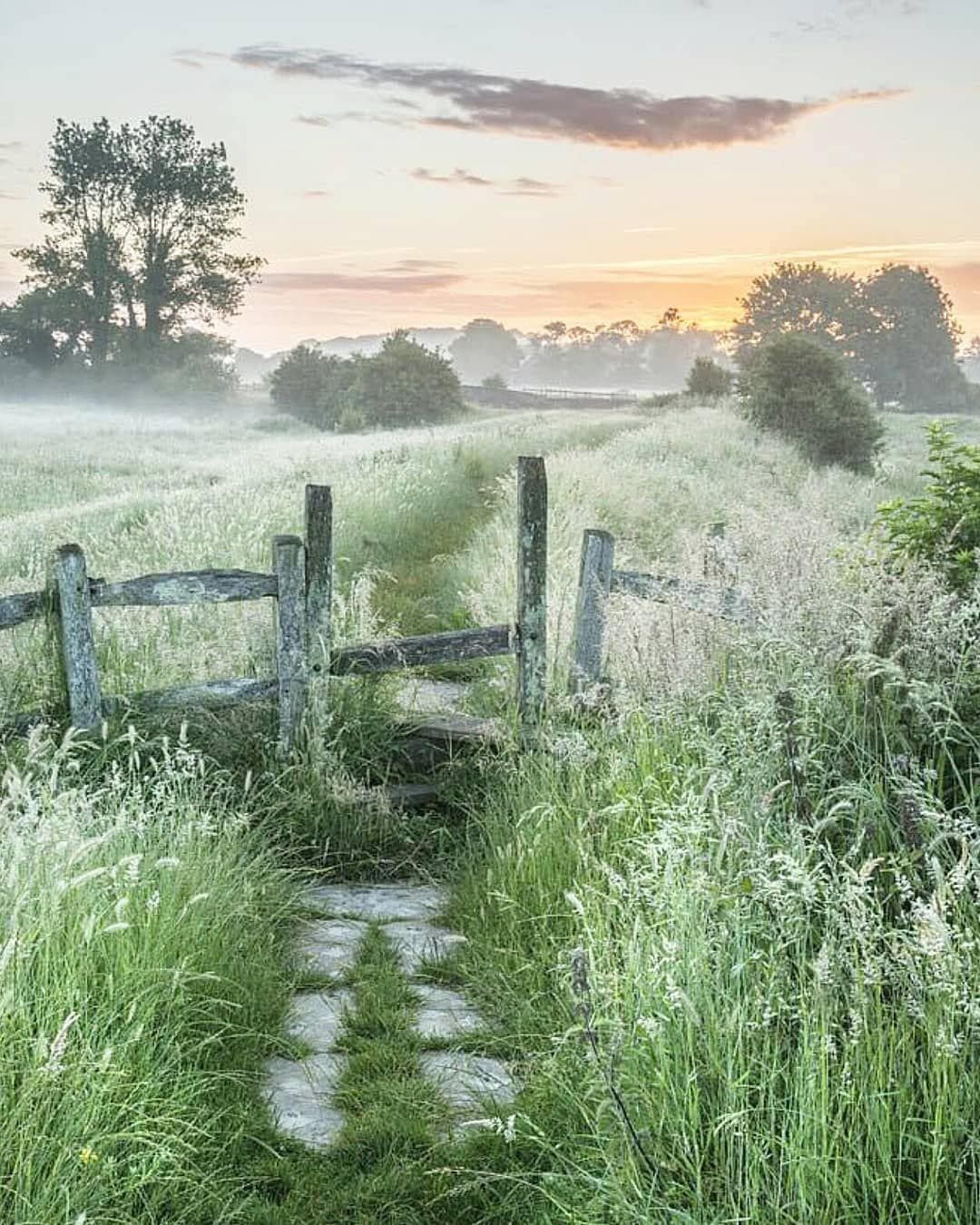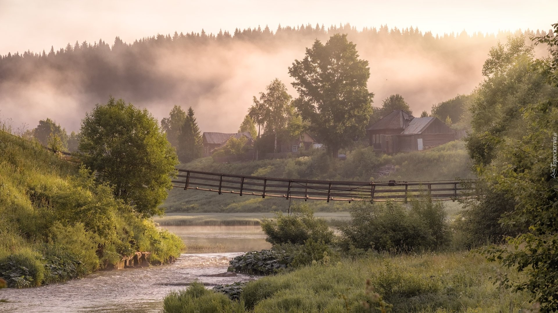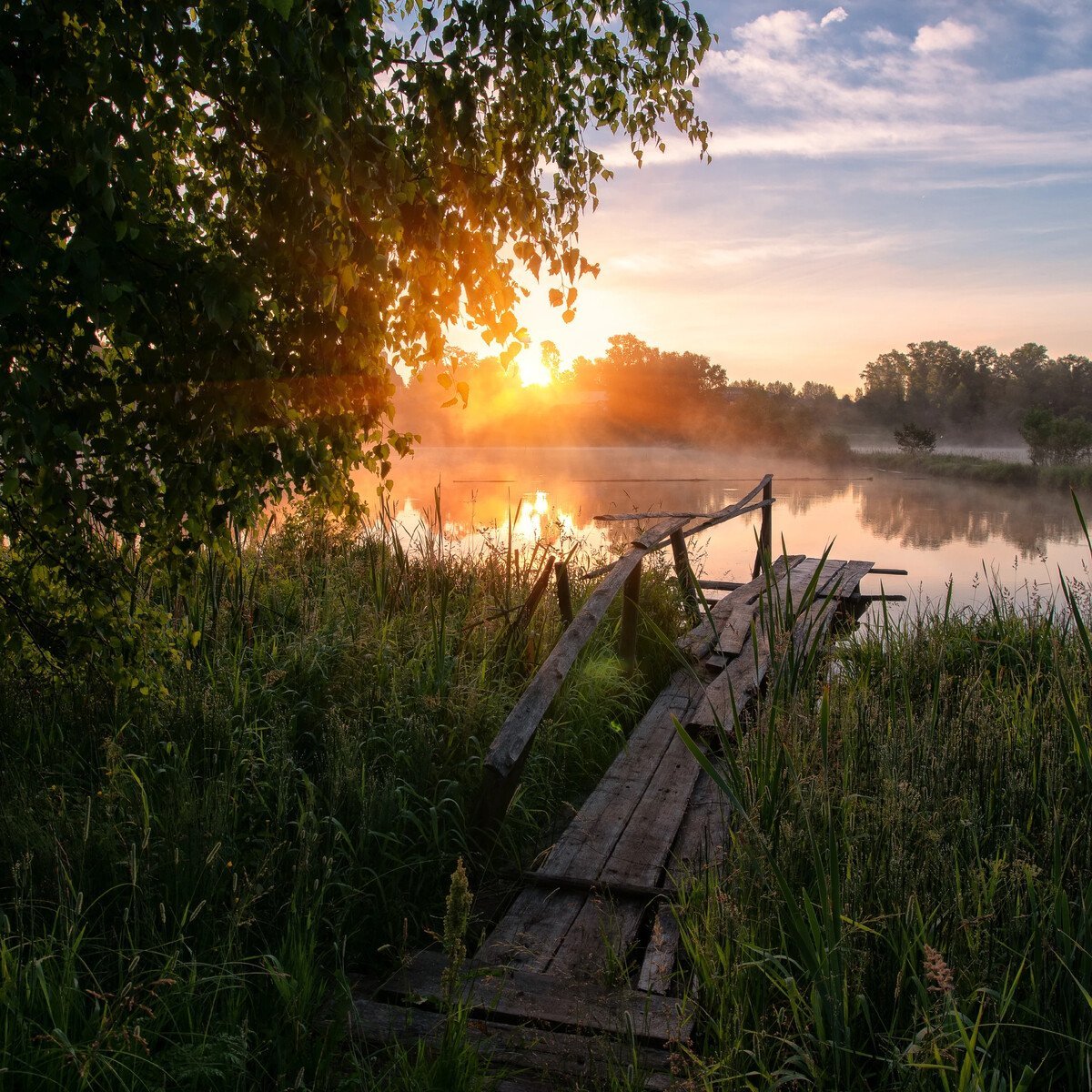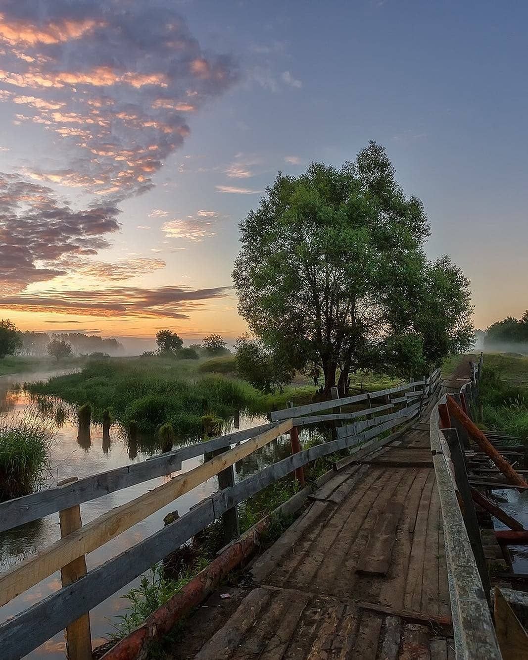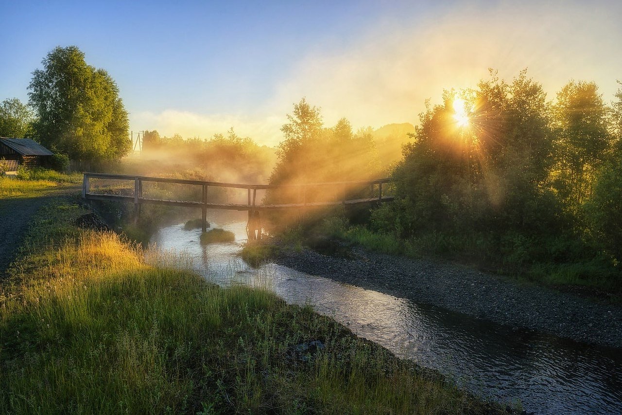 Река мостки рассвет деревня