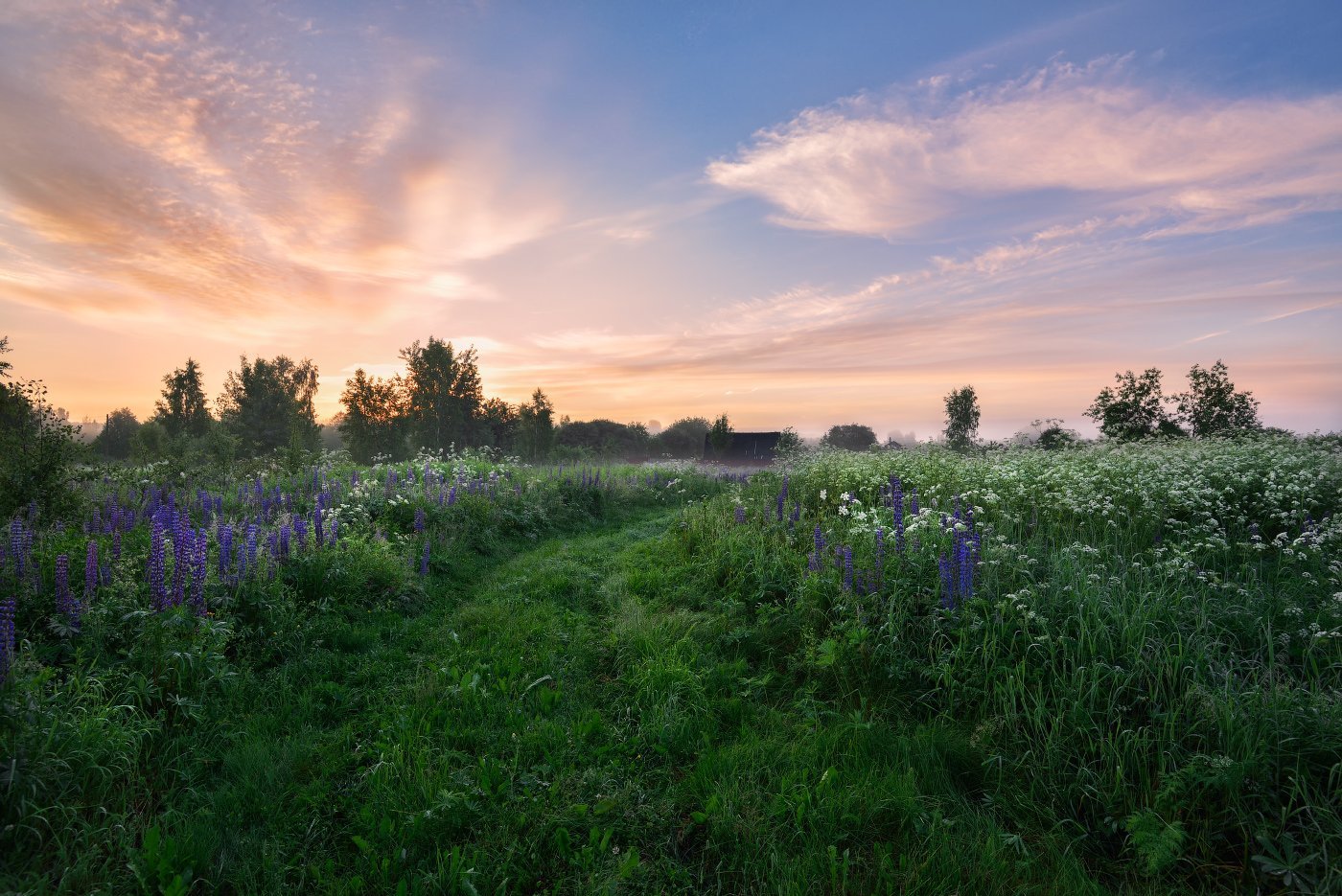 Рассвет в деревне летом
