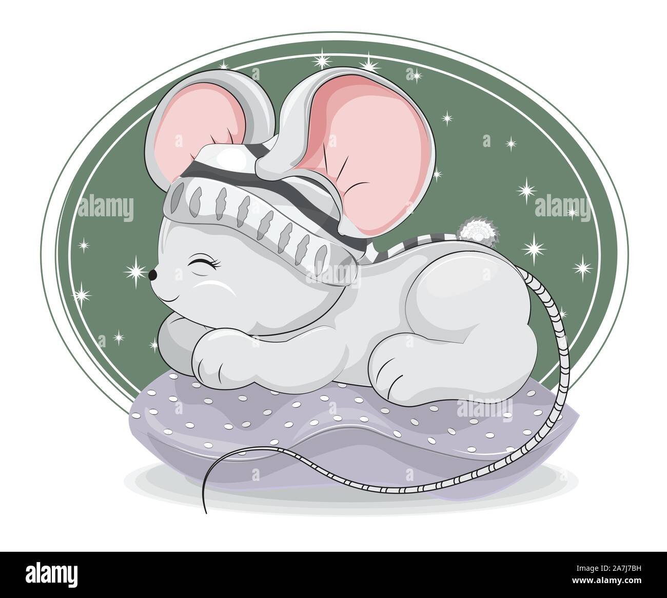 Мультяшный Сонный мышонок в колпаке