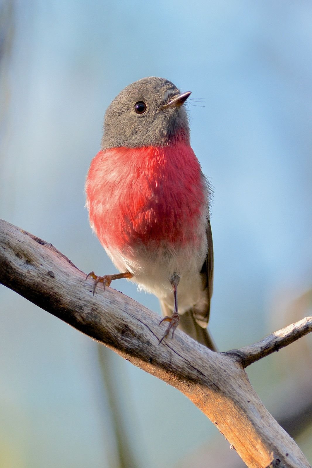 Серая птичка с красной грудкой