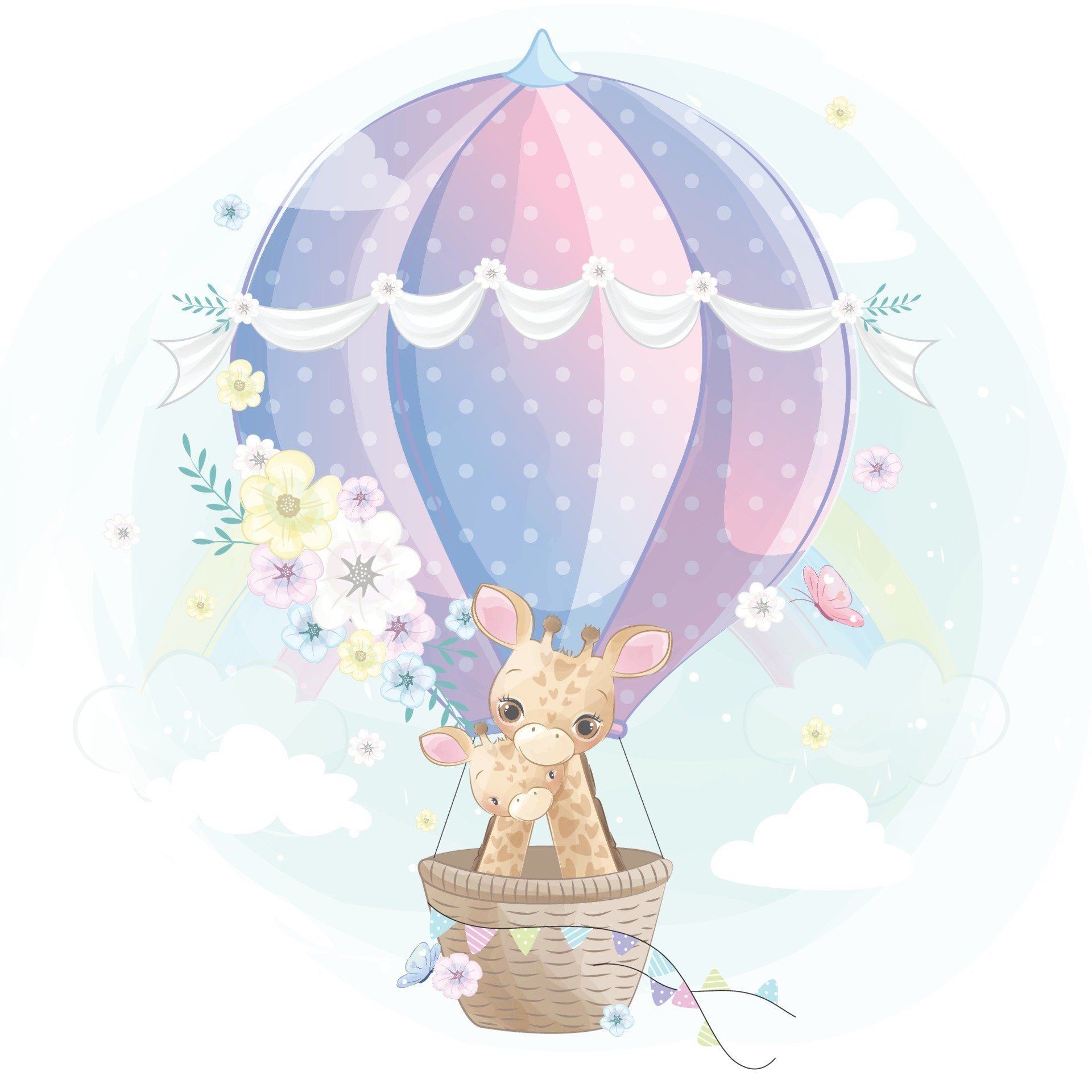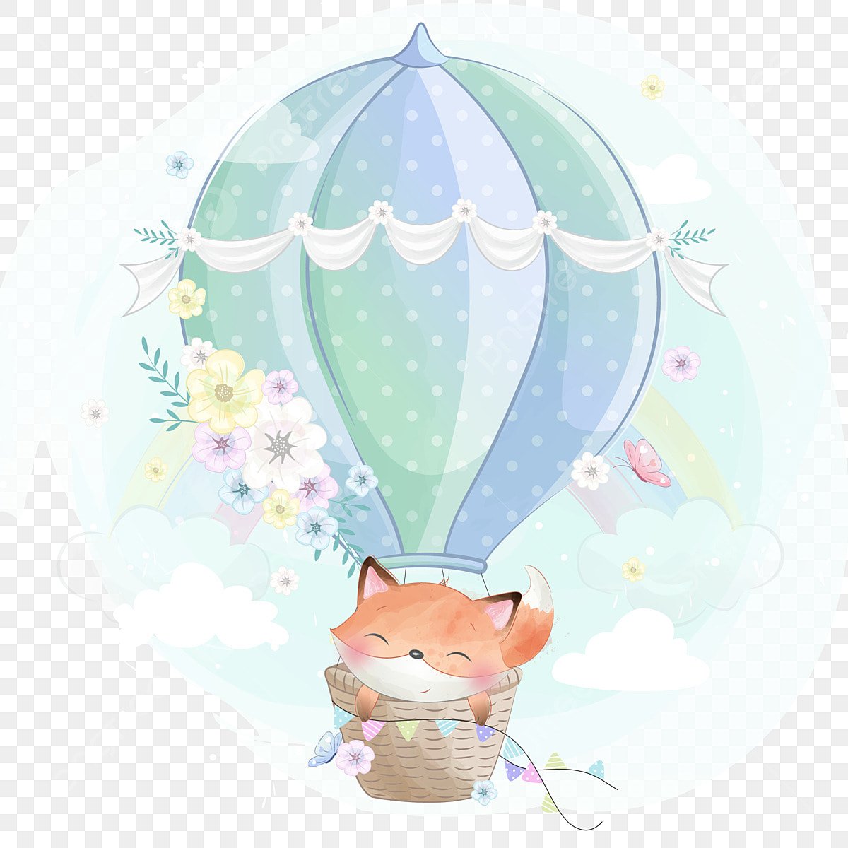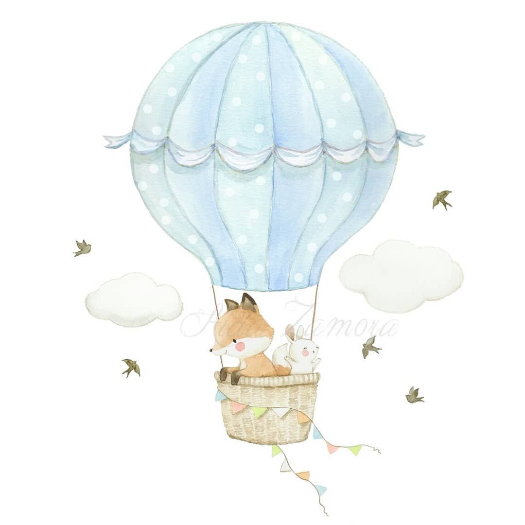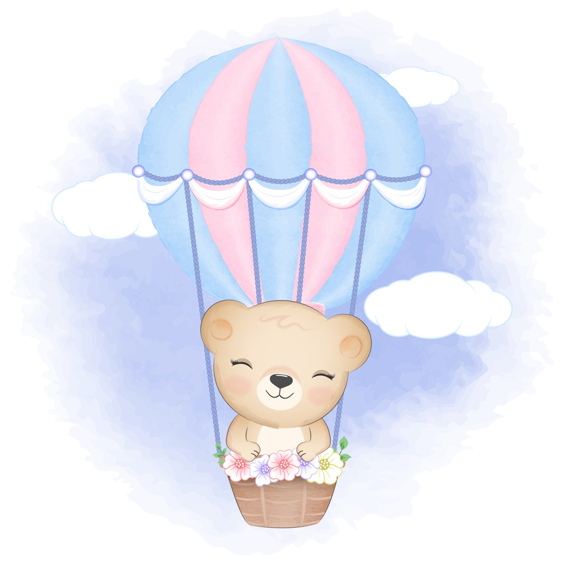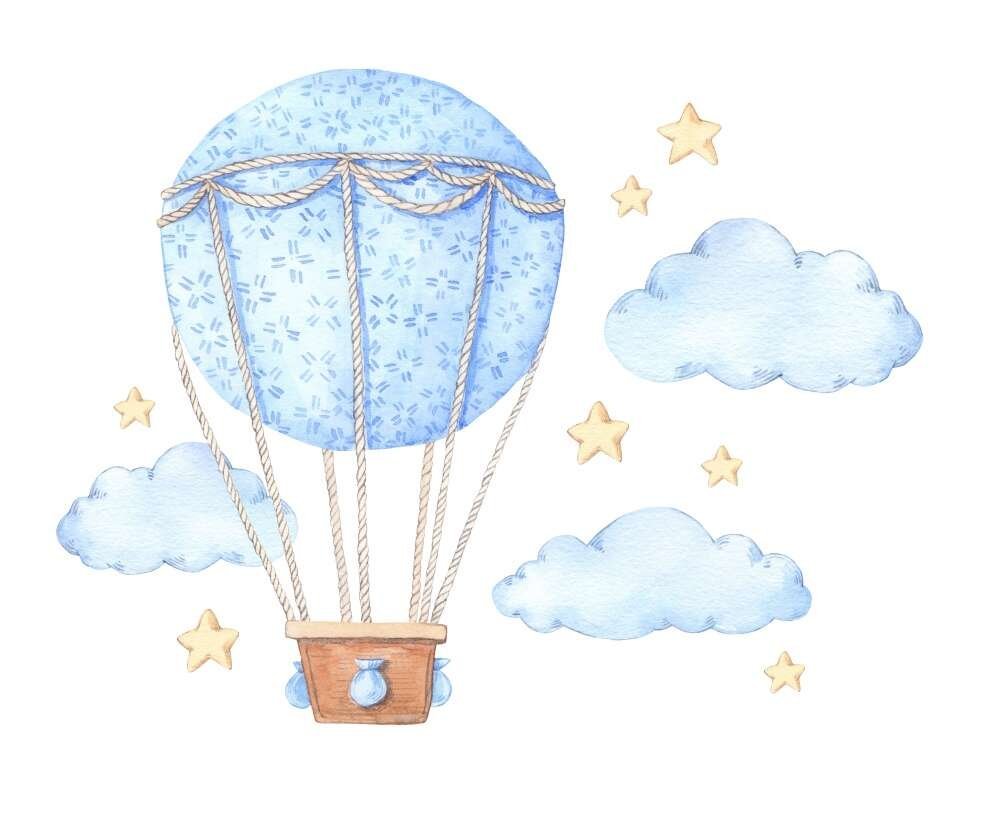 Воздушный шар в облаках акварелью