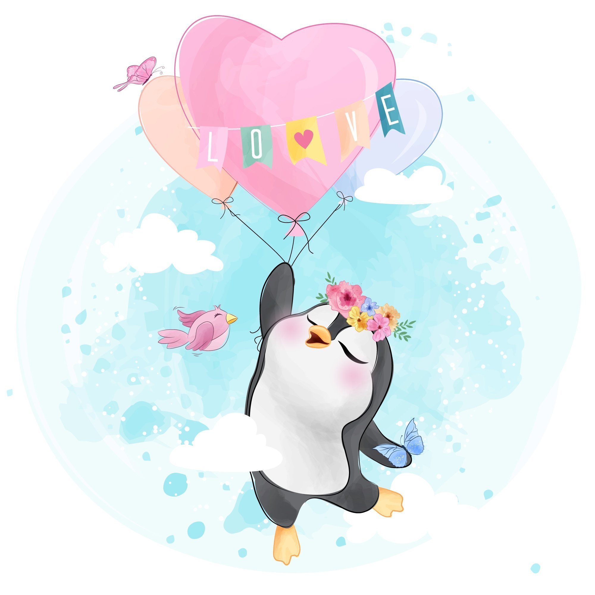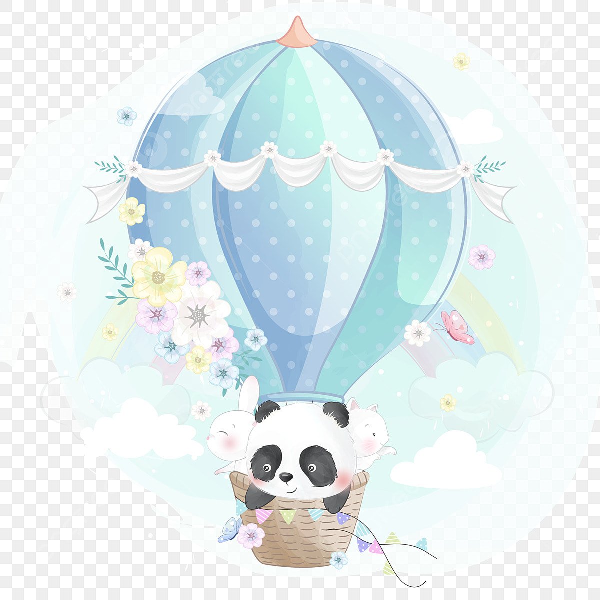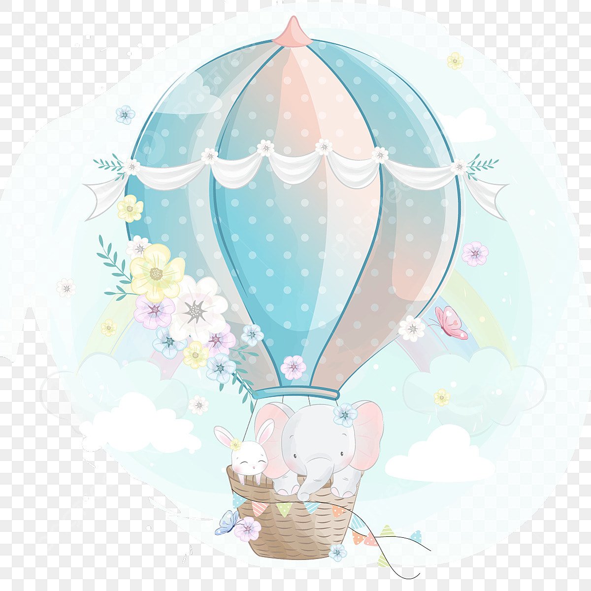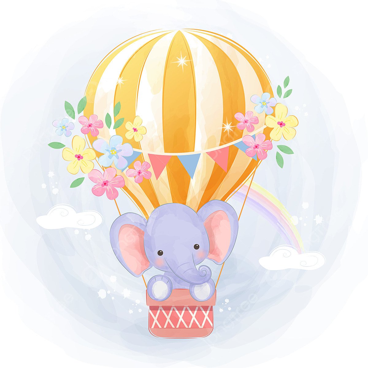 Воздушный шар в облаках акварелью