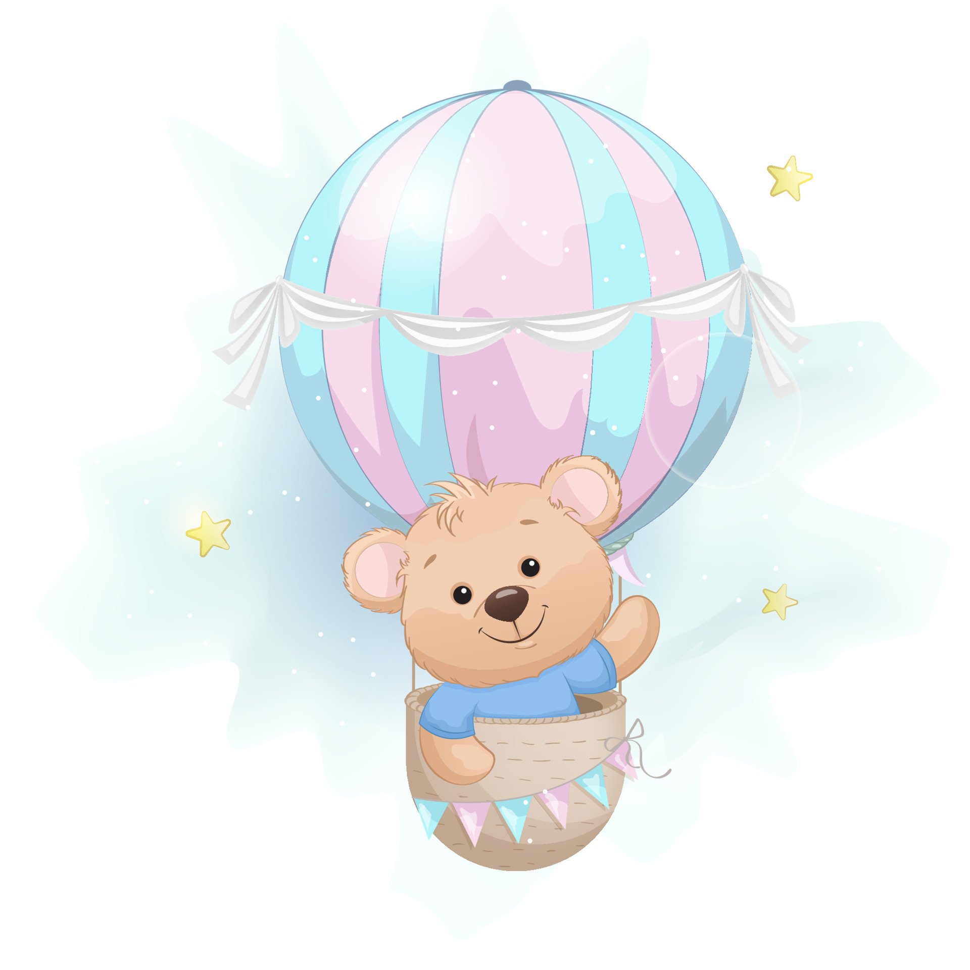 Мишка на воздушном шаре акварель