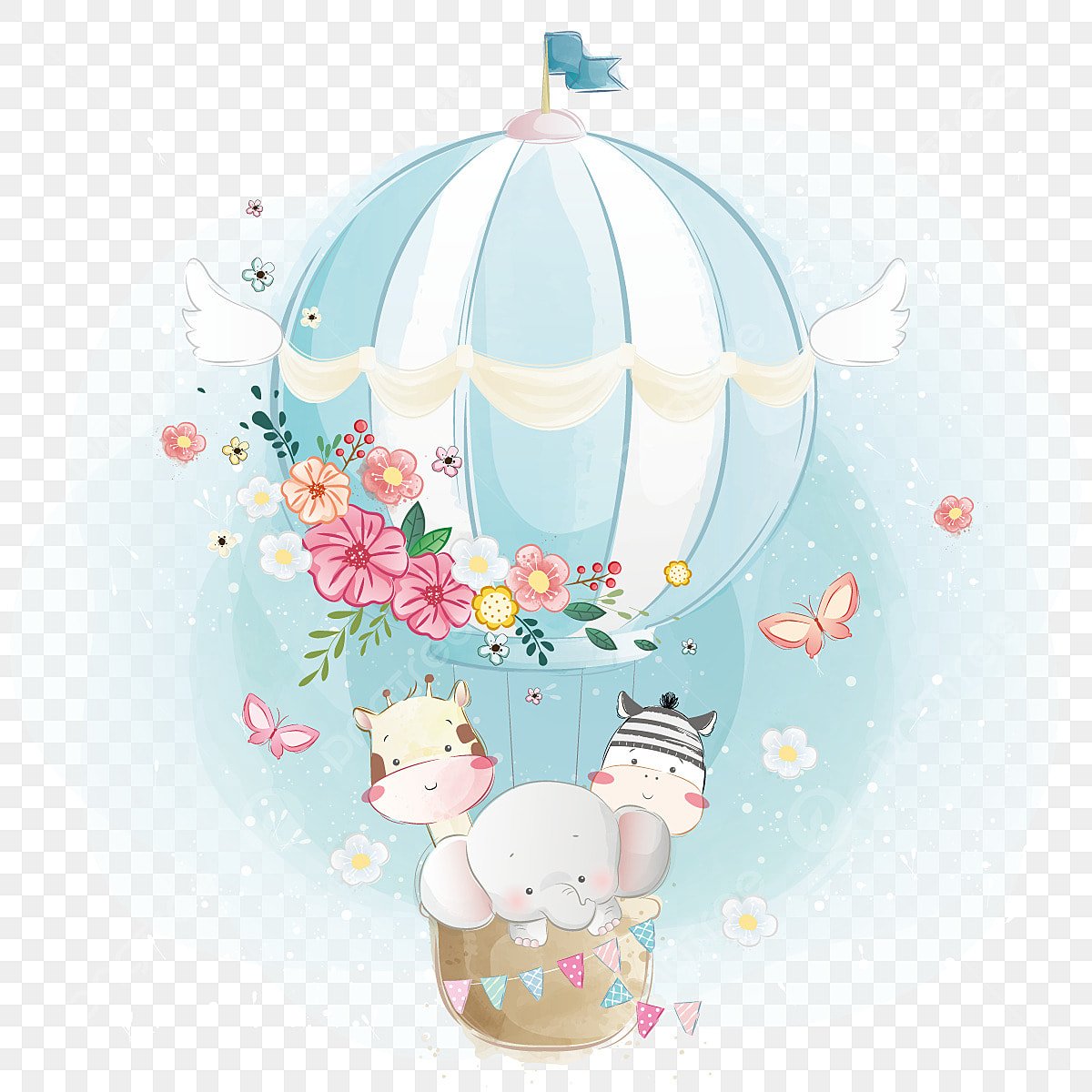 Воздушный шар с корзиной акварель