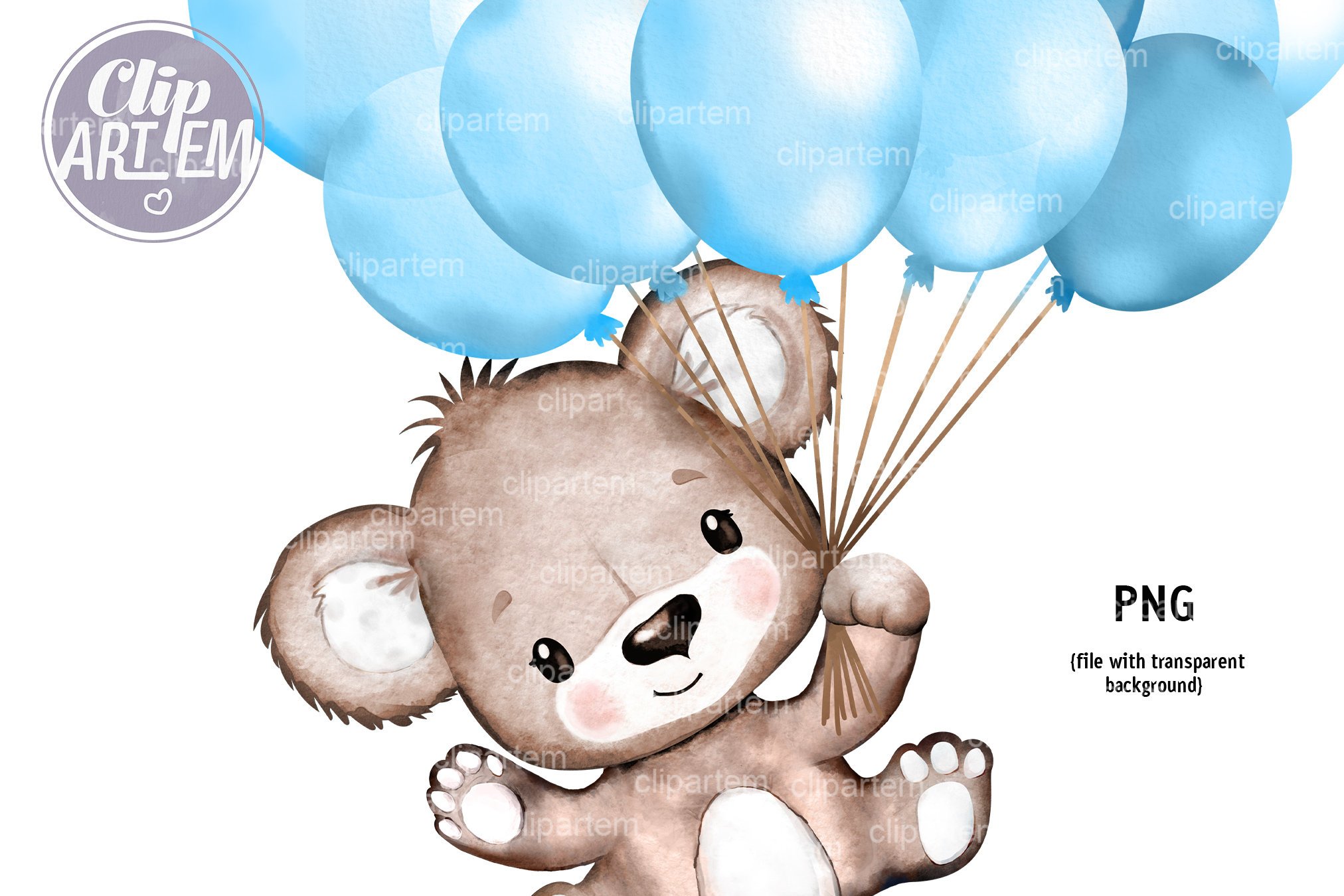 Медвежонок на воздушном шаре акварель