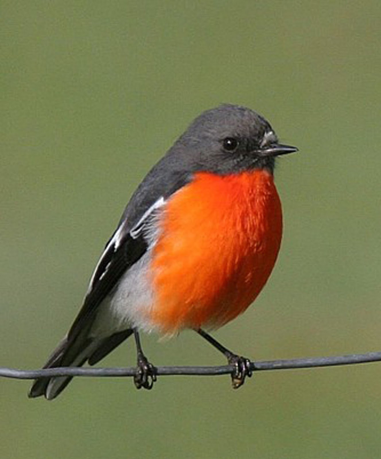 Серая птичка с оранжевой грудкой