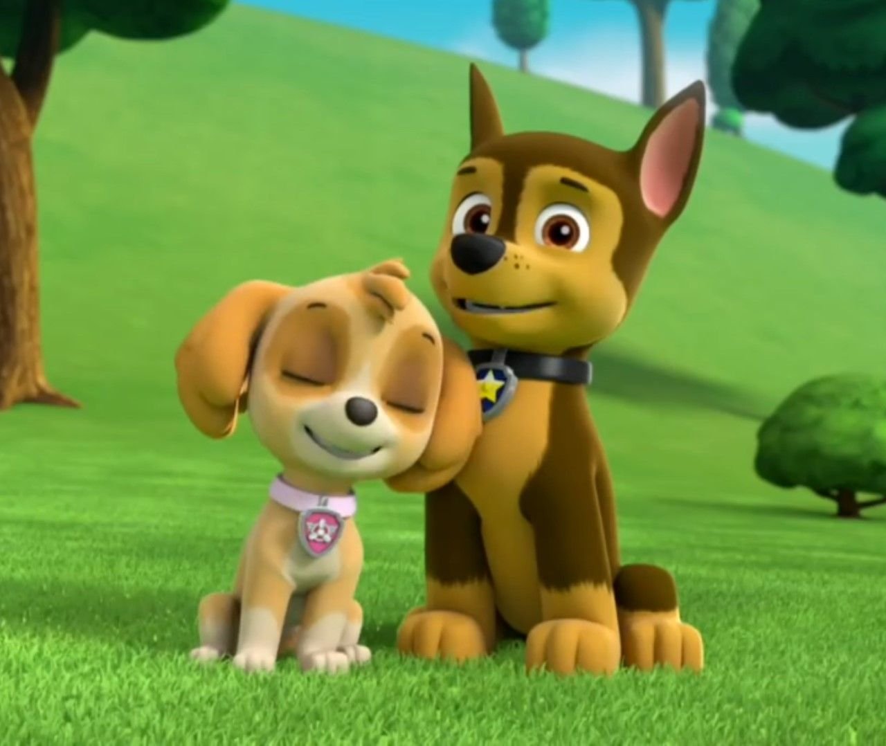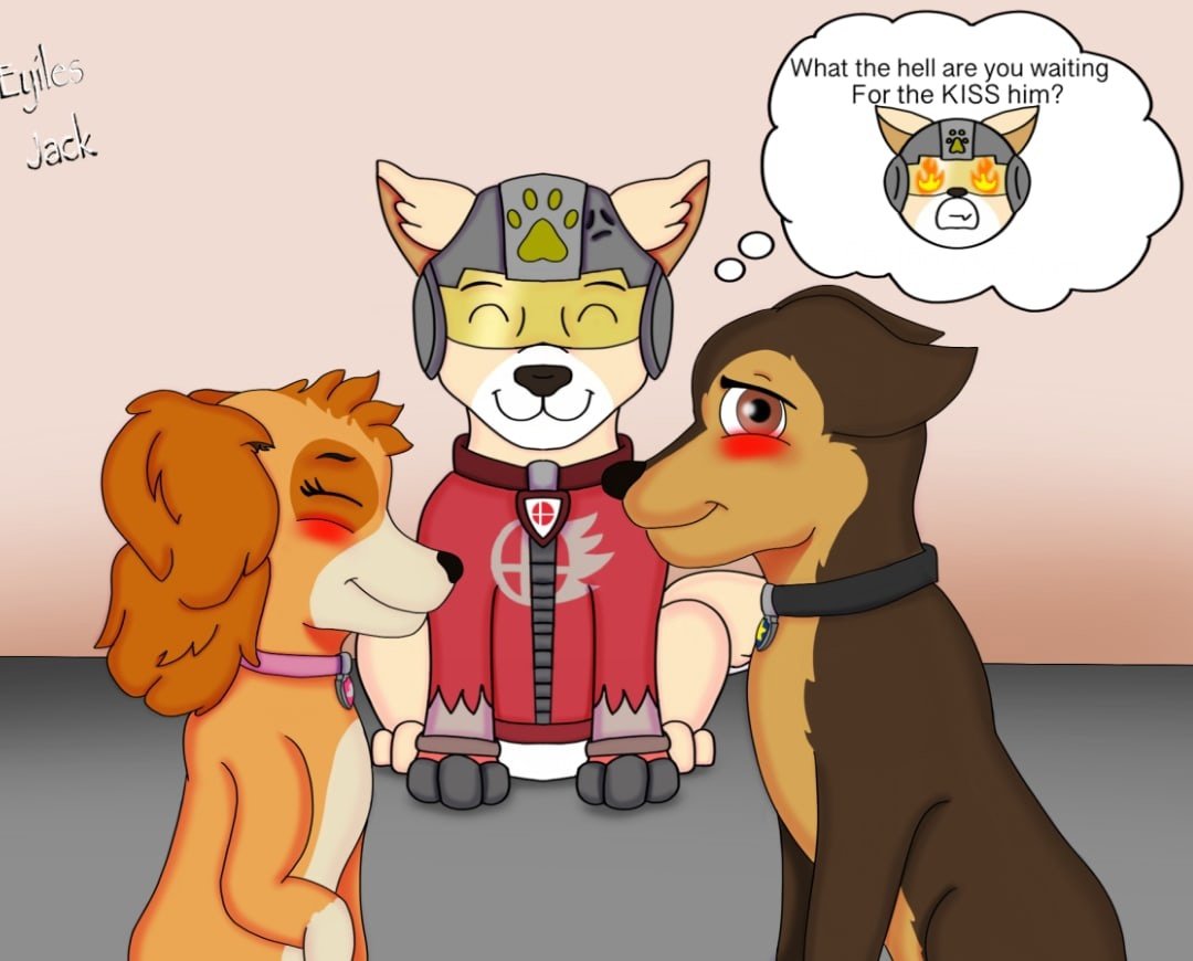 Щенячий патруль Скай и гонщик целуются