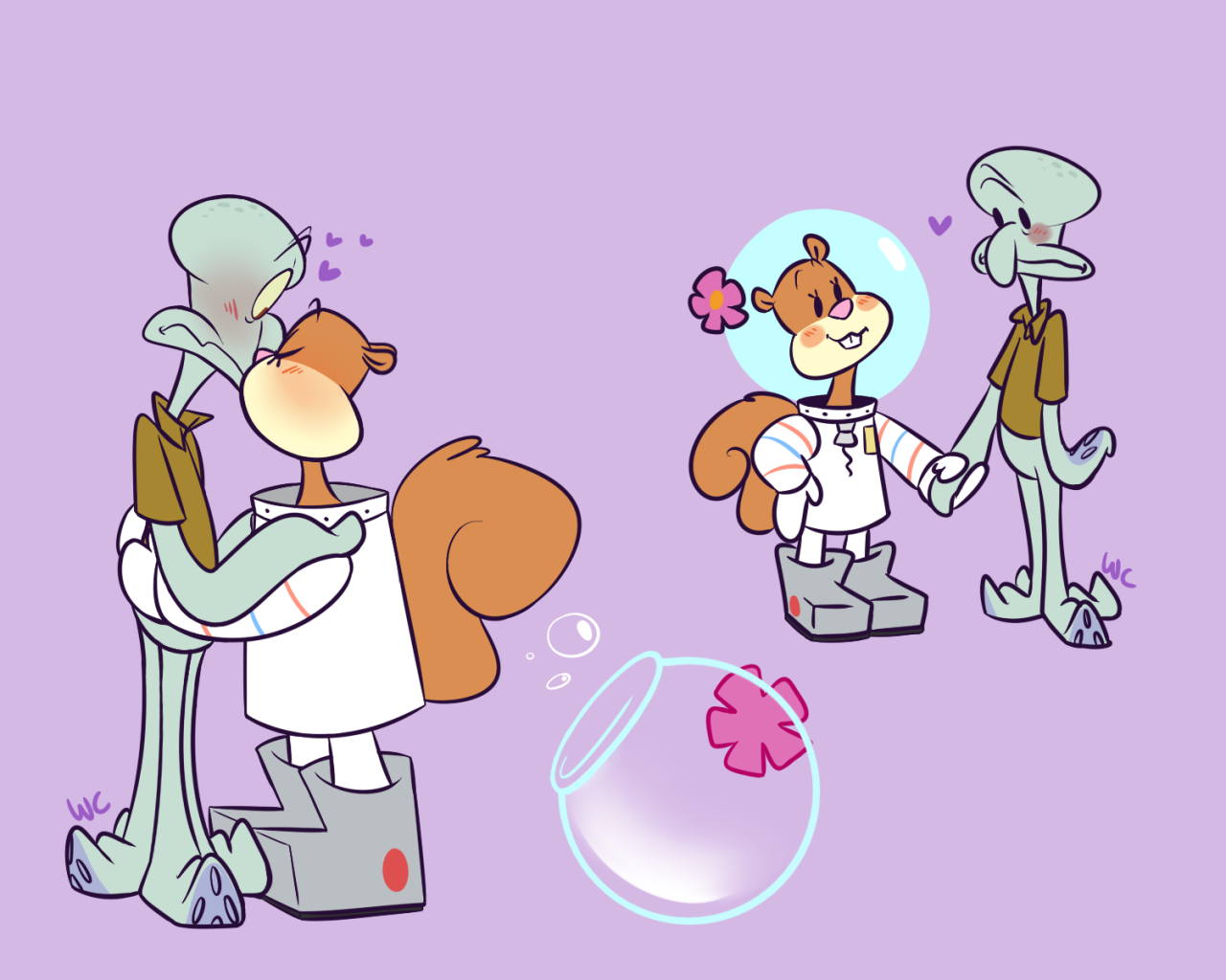 Сэнди и Сквидвард любовь арты