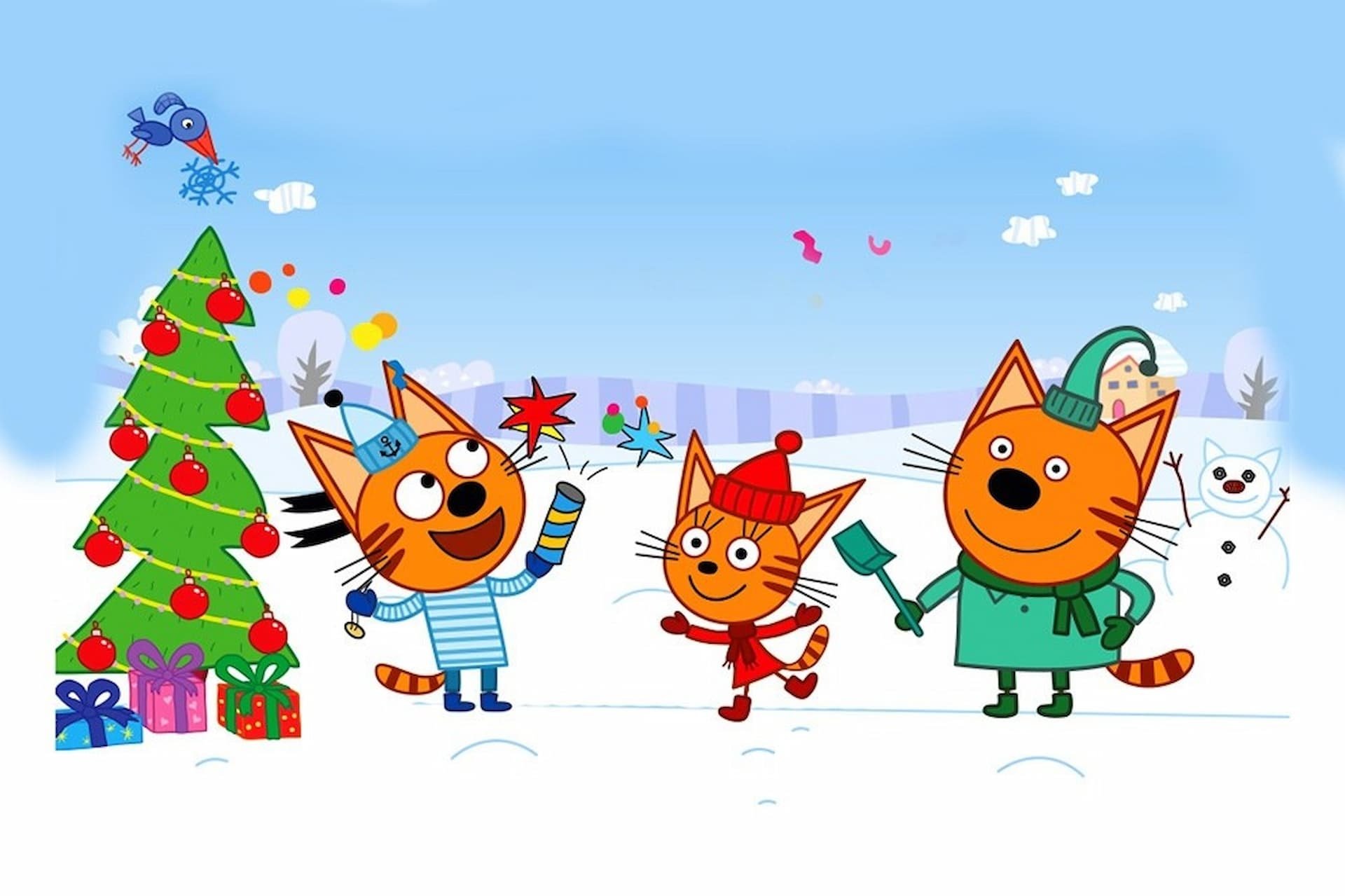 Три кота зима картинки