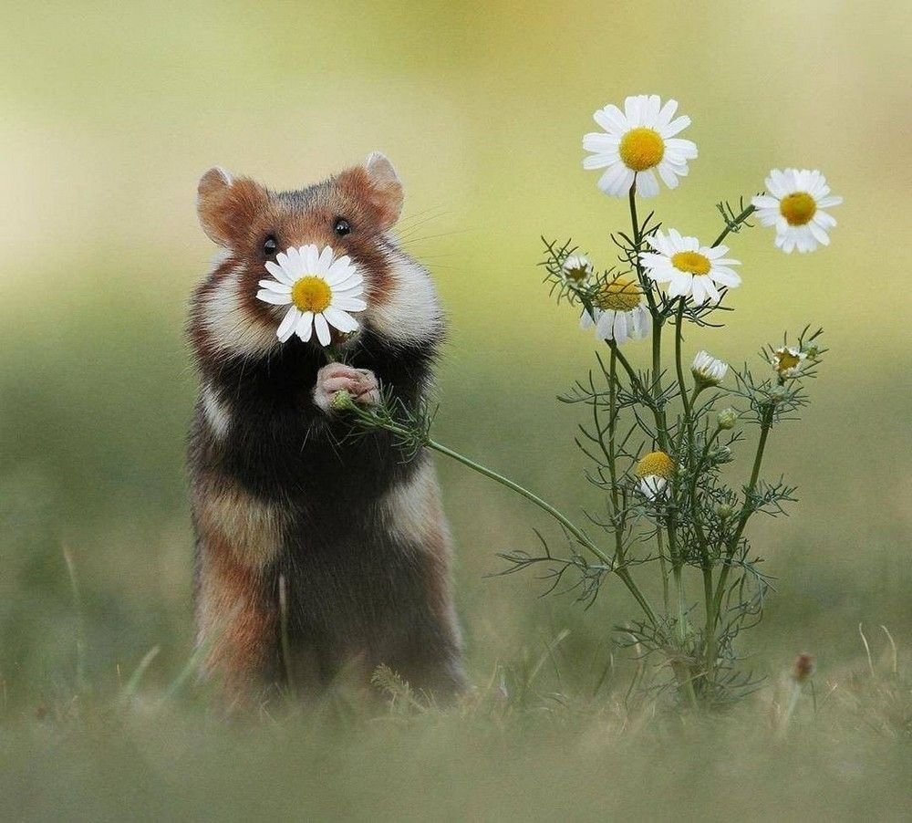 Милый хомячок с ромашкой