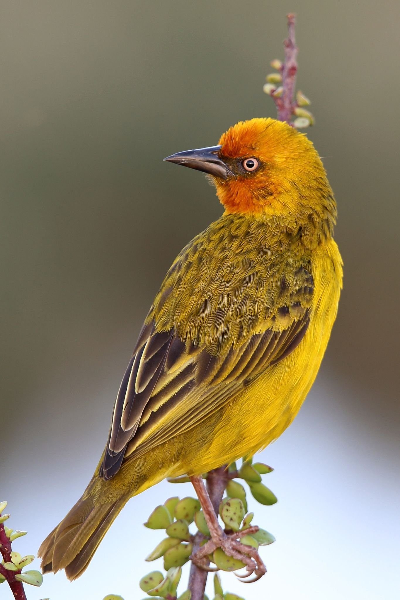 Желтая птичка с красной головой
