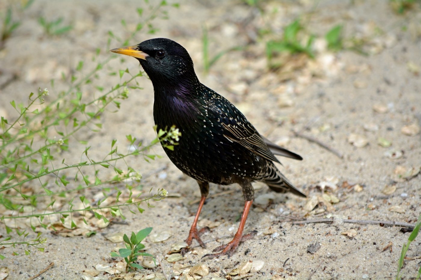 Чёрная птица с оранжевым клювом в Ленинградской области