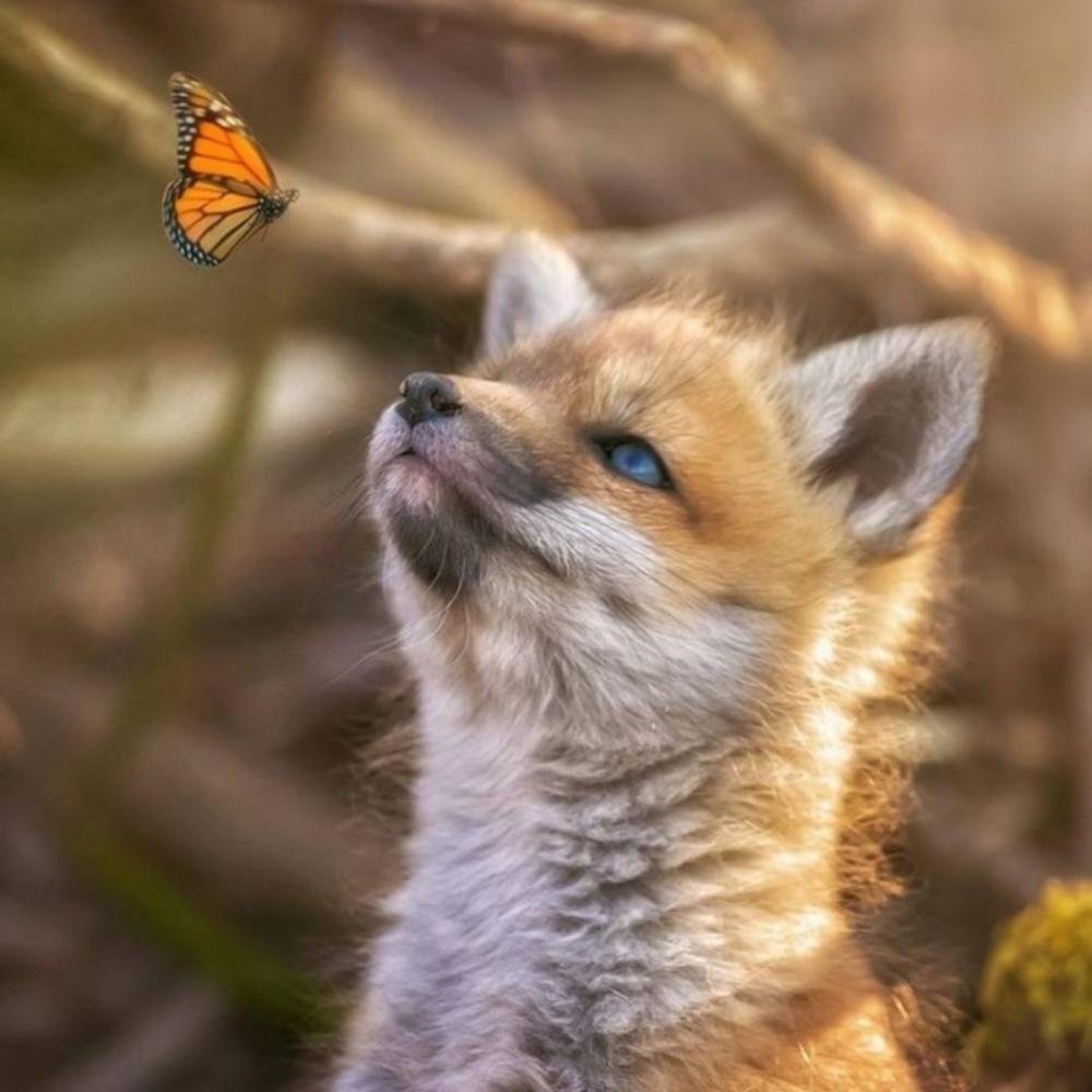 Лисенок с бабочкой