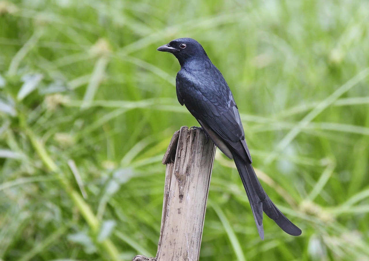Черная птица с длинным хвостом